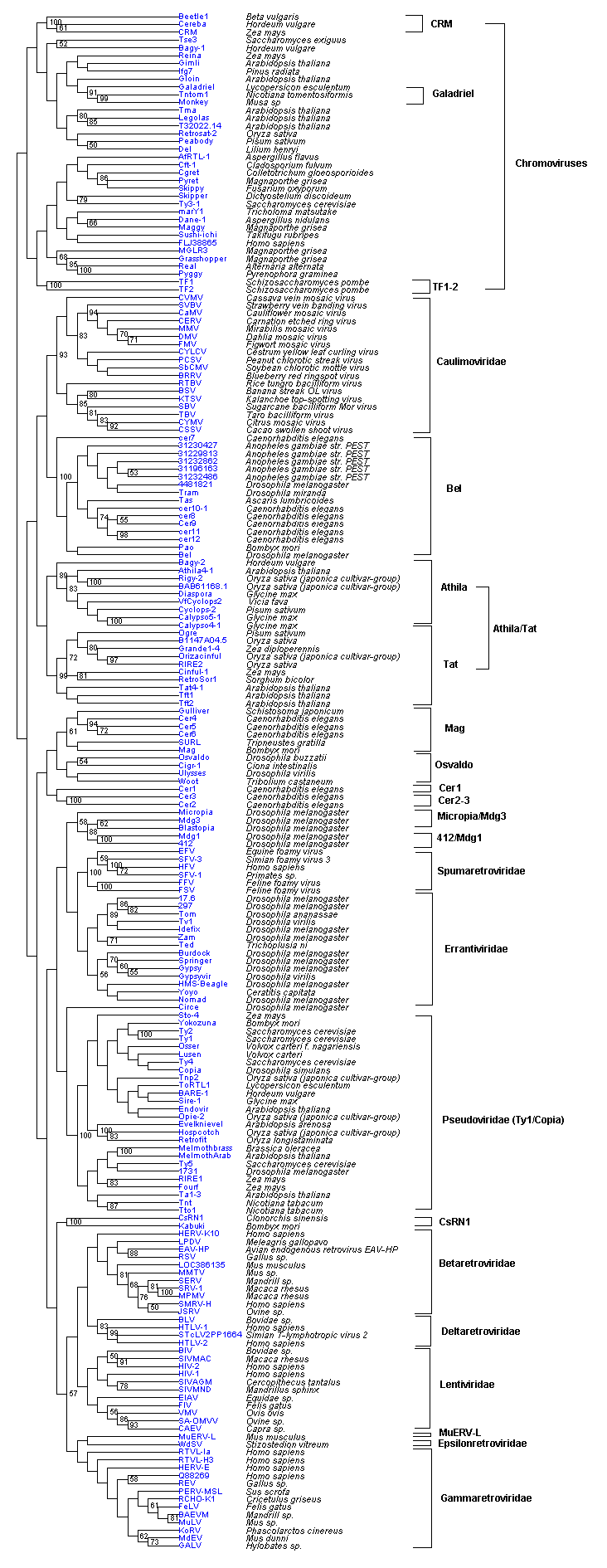 Llorens, C., Futami, R., Covelli, L., Dominguez-Escriba, L., Viu, J.M., Tamarit, D., Aguilar-Rodriguez, J. Vicente-Ripolles, M., Fuster, G., Bernet, G.P., Maumus, F., Munoz-Pomer, A., Sempere, J.M., LaTorre, A., Moya, A. (2011) The Gypsy Database (GyDB) of Mobile Genetic Elements: Release 2.0 Nucleic Acids Research (NARESE) 39 (suppl 1): D70-D74 doi: 10.1093/nar/gkq1061