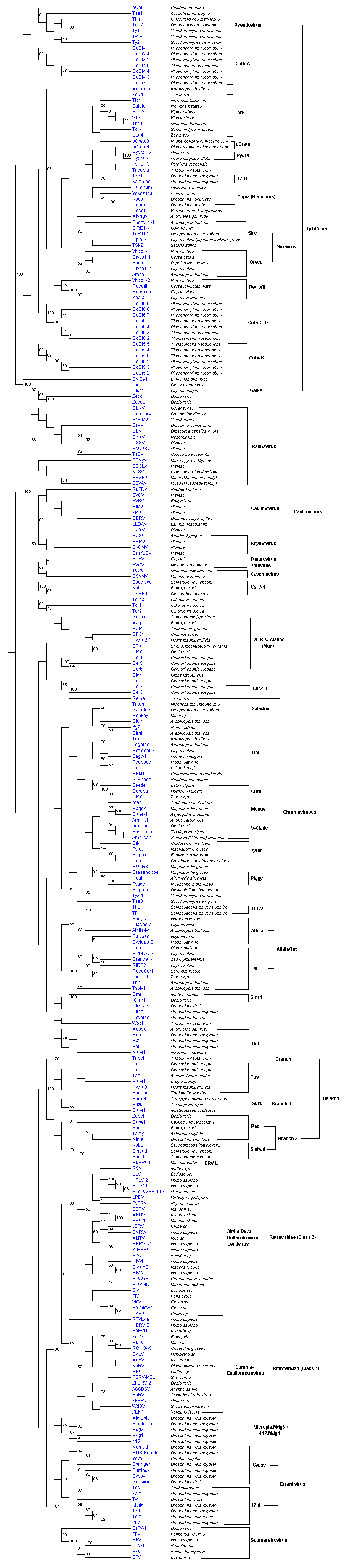 Llorens, C., Futami, R., Covelli, L., Dominguez-Escriba, L., Viu, J.M., Tamarit, D., Aguilar-Rodriguez, J. Vicente-Ripolles, M., Fuster, G., Bernet, G.P., Maumus, F., Munoz-Pomer, A., Sempere, J.M., LaTorre, A., Moya, A. (2011) The Gypsy Database (GyDB) of Mobile Genetic Elements: Release 2.0 Nucleic Acids Research (NARESE) 39 (suppl 1): D70-D74 doi: 10.1093/nar/gkq1061