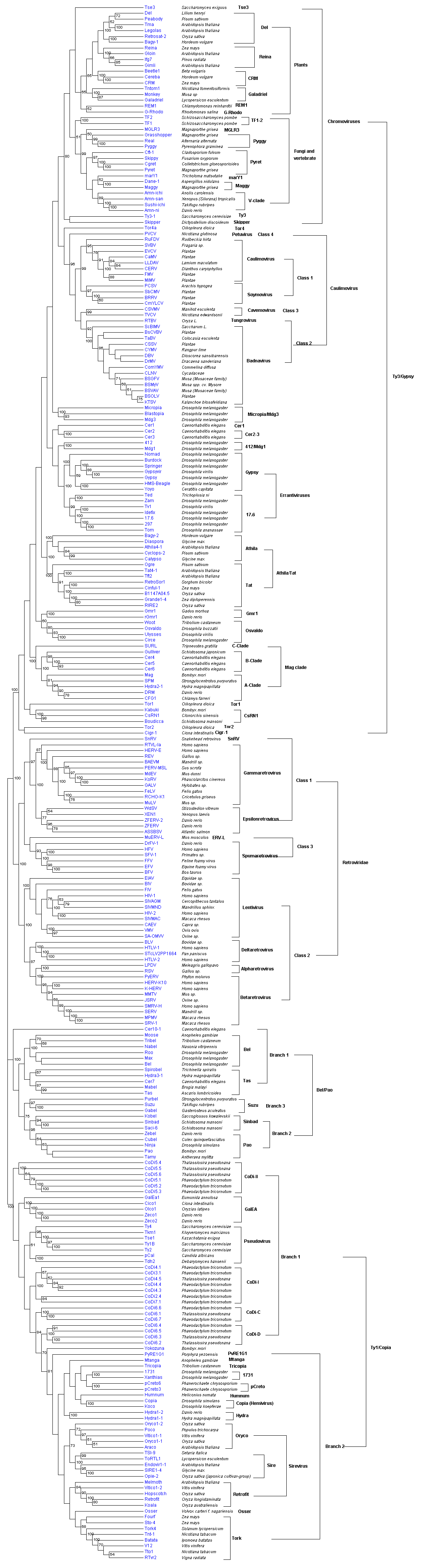 Llorens, C., Futami, R., Covelli, L., Dominguez-Escriba, L., Viu, J.M., Tamarit, D., Aguilar-Rodriguez, J. Vicente-Ripolles, M., Fuster, G., Bernet, G.P., Maumus, F., Munoz-Pomer, A., Sempere, J.M., LaTorre, A., Moya, A. (2011) The Gypsy Database (GyDB) of Mobile Genetic Elements: Release 2.0 Nucleic Acids Research (NARESE) 39 (suppl 1): D70-D74 doi: 10.1093/nar/gkq1061