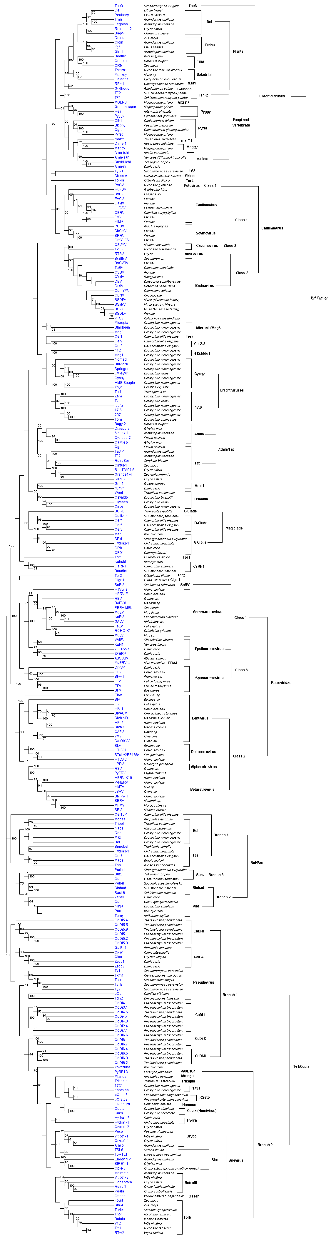 Llorens, C., Futami, R., Covelli, L., Dominguez-Escriba, L., Viu, J.M., Tamarit, D., Aguilar-Rodriguez, J. Vicente-Ripolles, M., Fuster, G., Bernet, G.P., Maumus, F., Munoz-Pomer, A., Sempere, J.M., LaTorre, A., Moya, A. (2011) The Gypsy Database (GyDB) of Mobile Genetic Elements: Release 2.0 Nucleic Acids Research (NARESE) 39 (suppl 1): D70-D74 doi: 10.1093/nar/gkq1061