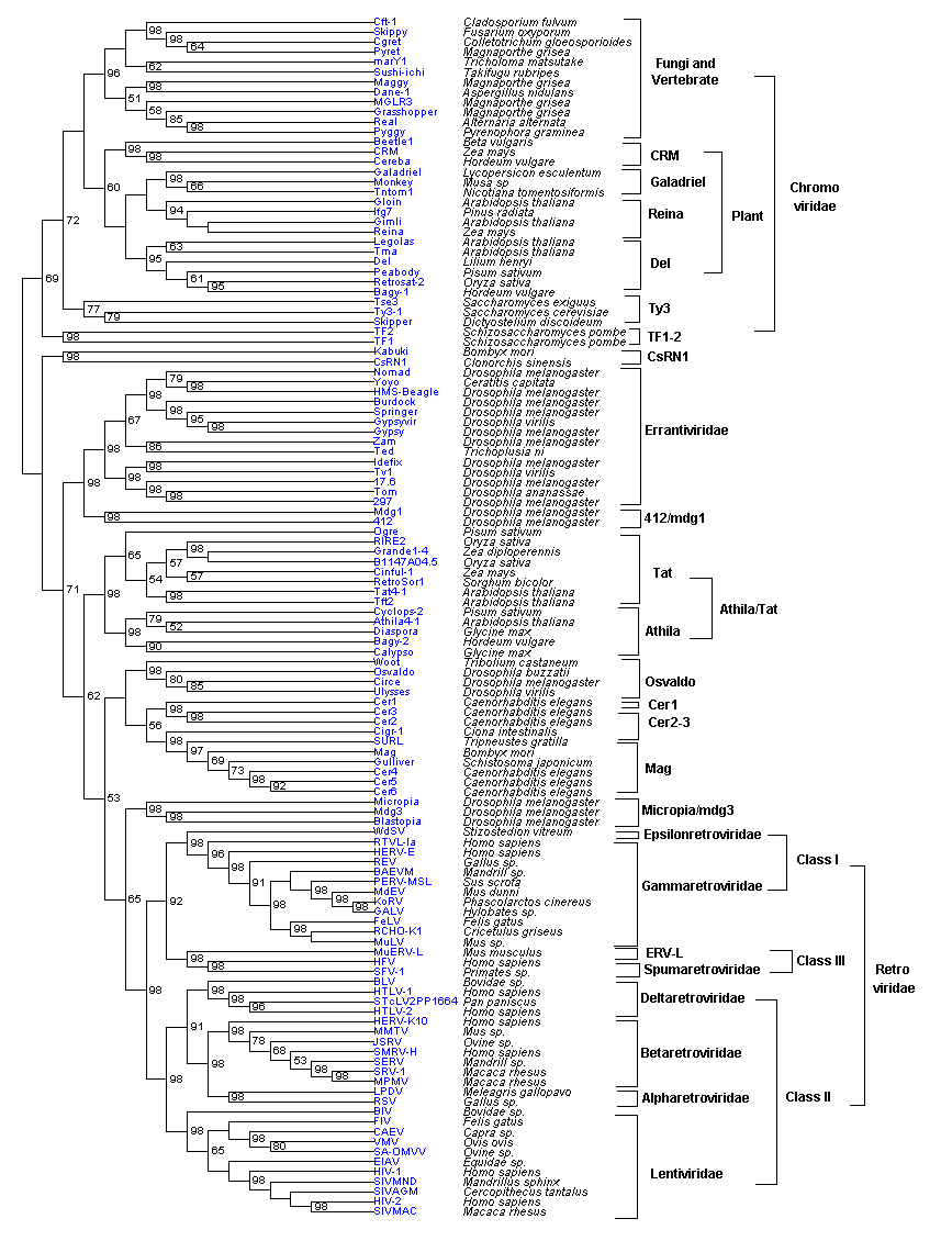 Llorens, C., Futami, R., Covelli, L., Dominguez-Escriba, L., Viu, J.M., Tamarit, D., Aguilar-Rodriguez, J. Vicente-Ripolles, M., Fuster, G., Bernet, G.P., Maumus, F., Munoz-Pomer, A., Sempere, J.M., LaTorre, A., Moya, A. (2011) The Gypsy Database (GyDB) of Mobile Genetic Elements: Release 2.0 Nucleic Acids Research (NARESE) 39 (suppl 1): D70-D74 doi: 10.1093/nar/gkq1061