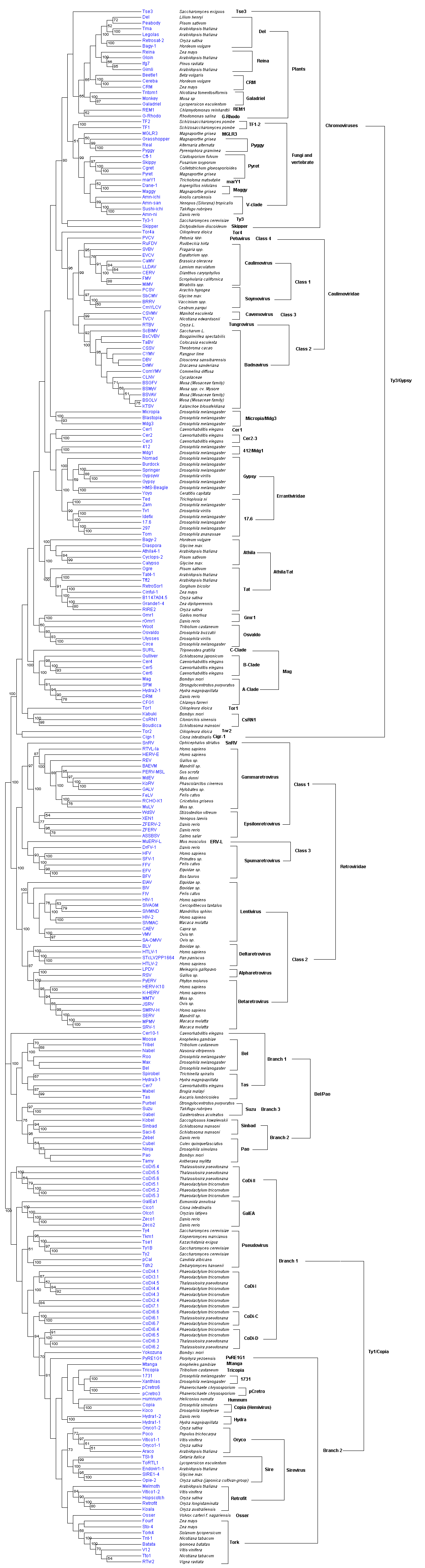 Llorens, C., Futami, R., Covelli, L., Dominguez-Escriba, L., Viu, J.M., Tamarit, D., Aguilar-Rodriguez, J. Vicente-Ripolles, M., Fuster, G., Bernet, G.P., Maumus, F., Munoz-Pomer, A., Sempere, J.M., LaTorre, A., Moya, A. (2011) The Gypsy Database (GyDB) of Mobile Genetic Elements: Release 2.0 Nucleic Acids Research (NARESE) 39 (suppl 1): D70-D74 doi: 10.1093/nar/gkq1061