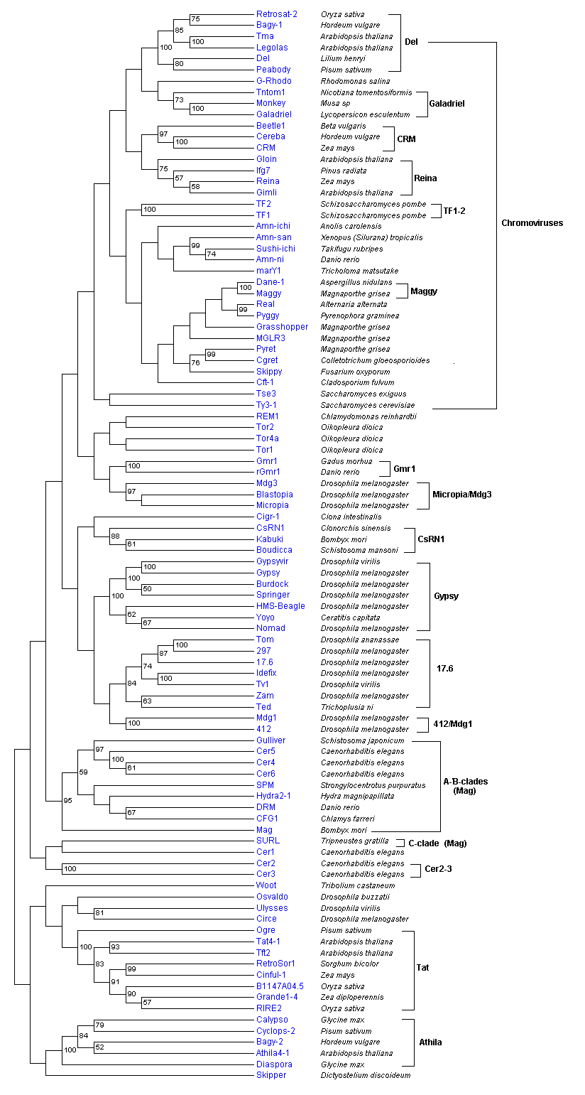 Llorens, C., Futami, R., Covelli, L., Dominguez-Escriba, L., Viu, J.M., Tamarit, D., Aguilar-Rodriguez, J. Vicente-Ripolles, M., Fuster, G., Bernet, G.P., Maumus, F., Munoz-Pomer, A., Sempere, J.M., LaTorre, A., Moya, A. (2011) The Gypsy Database (GyDB) of Mobile Genetic Elements: Release 2.0 Nucleic Acids Research (NARESE) 39 (suppl 1): D70-D74 doi: 10.1093/nar/gkq1061